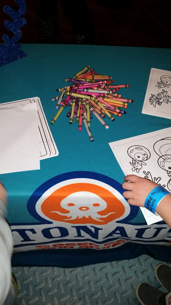 After the show was over, we were invited for a VIP Party and Meet and Greet with a few of the Octonauts. They had snacks and water for us while we waited for the characters to arrive. They had a photo booth set up taking photos of the kids that we can download online and then the characters showed up. While I do wish they offered all of them, they select 2 for the meet and greet. (Not sure how they determine the 2 that night.) Broxton is really into penguins so we were crossing our fingers to see Peso, but he wasn't there.