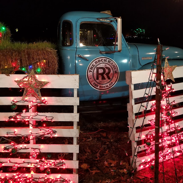 If you have been following me on social media, you know that we have been to The Rock Ranch on several occasions and we always have a great time. We love going to spend the day there. We try to be the first to arrive (good parking! and more time there) and crazy enough, we seem to be the last ones to leave. We have gone before Savannah was born, meaning Broxton and even an older brother... and of course now with the little princess of the family. We were recently invited to visit and check out their "Country Christmas" and I was thankful that we did. As a mama of 2 on a budget, I was wondering if it would be worth the money and time to go. I mean, if you go for the DAY, it is great... but just to ride through a mile of lights and drive almost 2 hours to get there, I was not sure on that one!